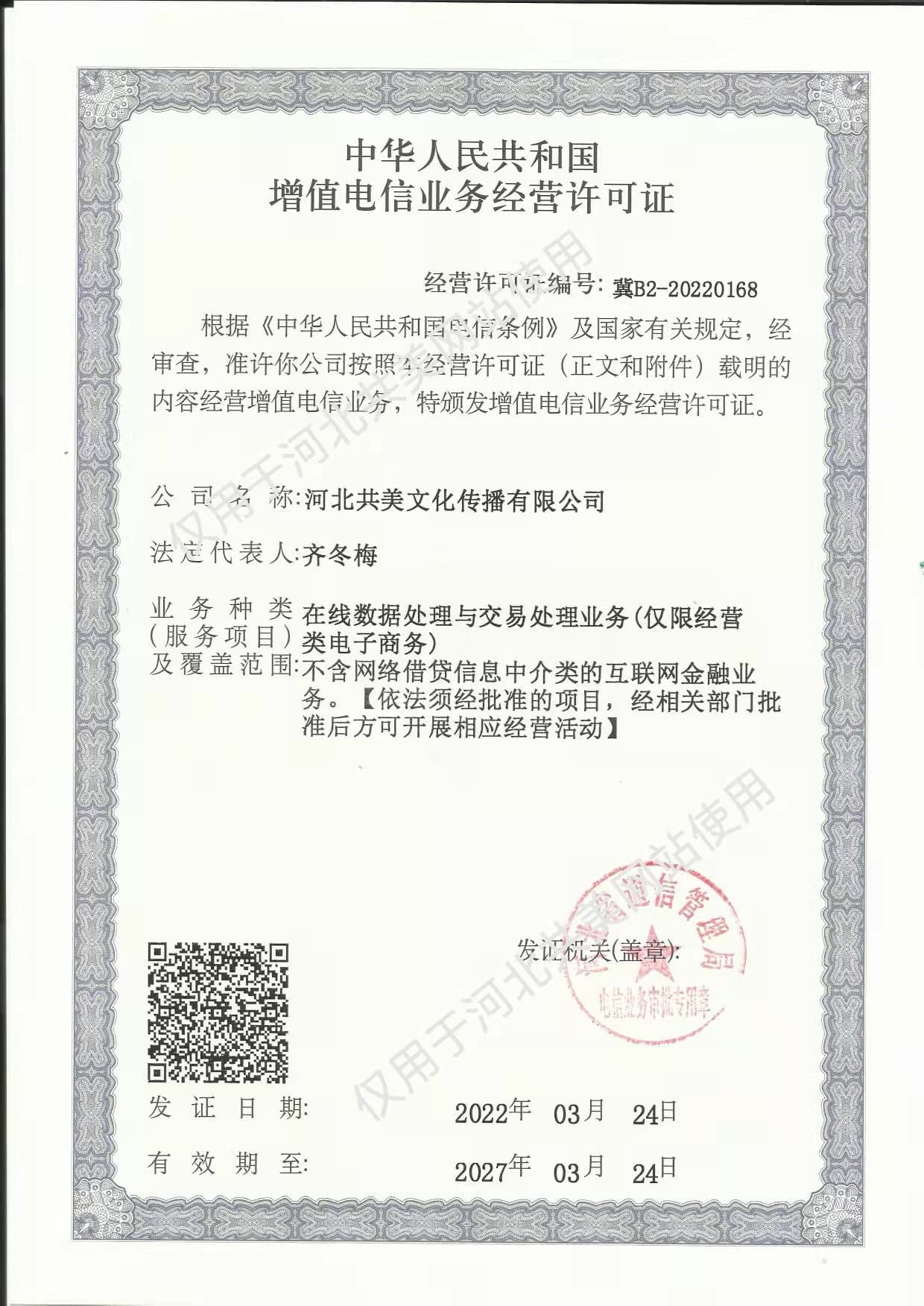 增值電信業(yè)務(wù)經(jīng)營(yíng)許可證