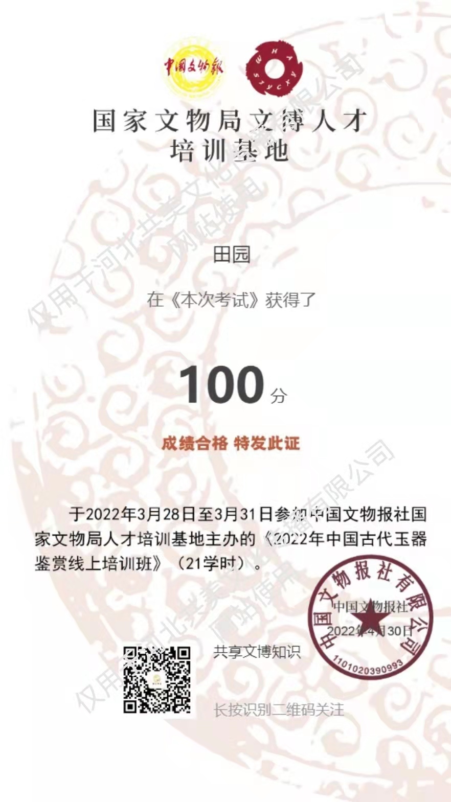 中國古代玉器鑒賞合格證1